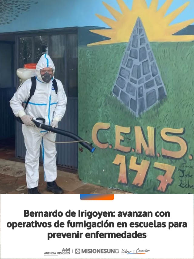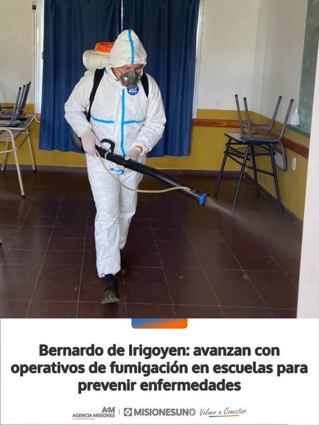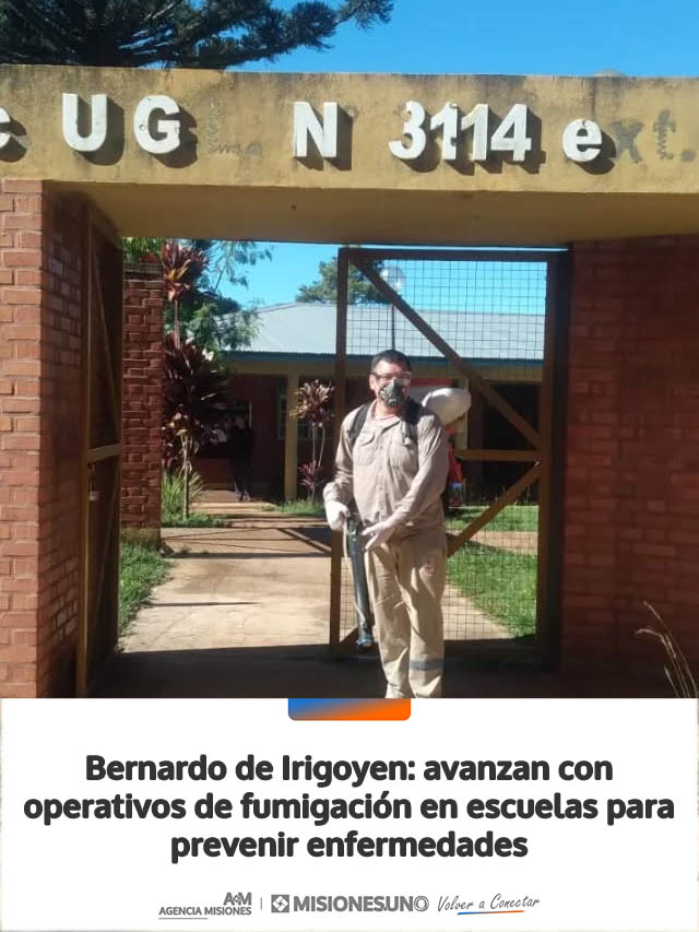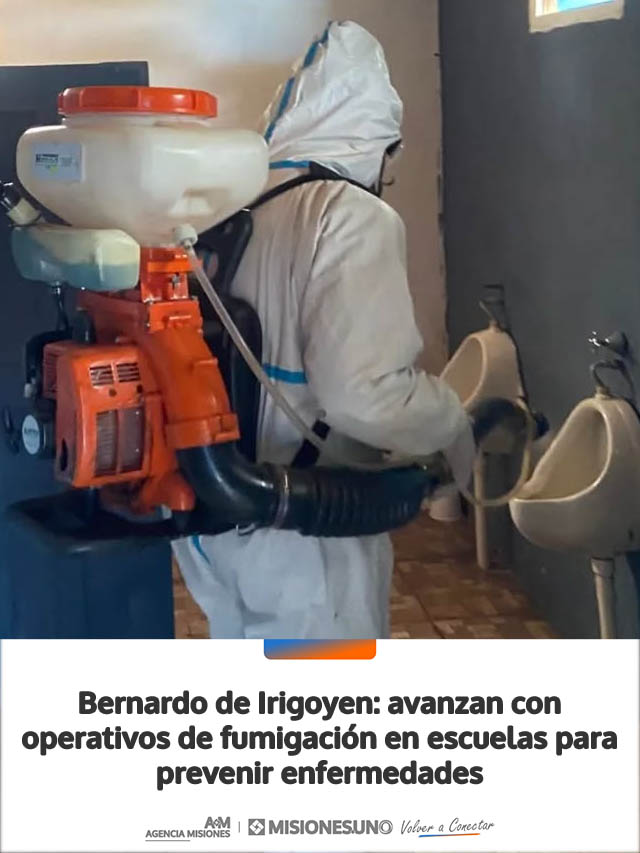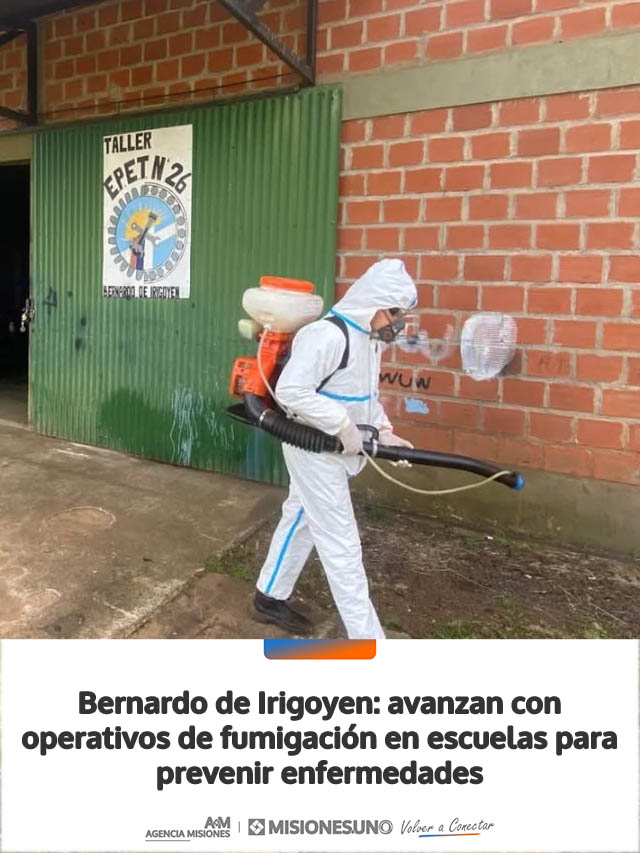 AGENCIA MISIONES.UNO | La Municipalidad de Bernardo de Irigoyen continúa desarrollando tareas de prevención sanitaria en distintos puntos de la ciudad, con operativos de fumigación en establecimientos educativos.