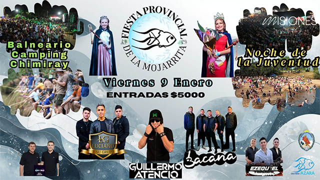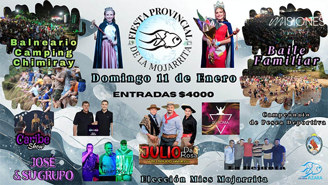 AGENCIAMISIONES.UNO | Azara se prepara para vivir del 9 al 11 de enero la XXI° Fiesta Provincial de la Mojarrita, un evento que combinará espectáculos, actividades recreativas y propuestas gastronómicas en el Balneario Camping Chimiray.
